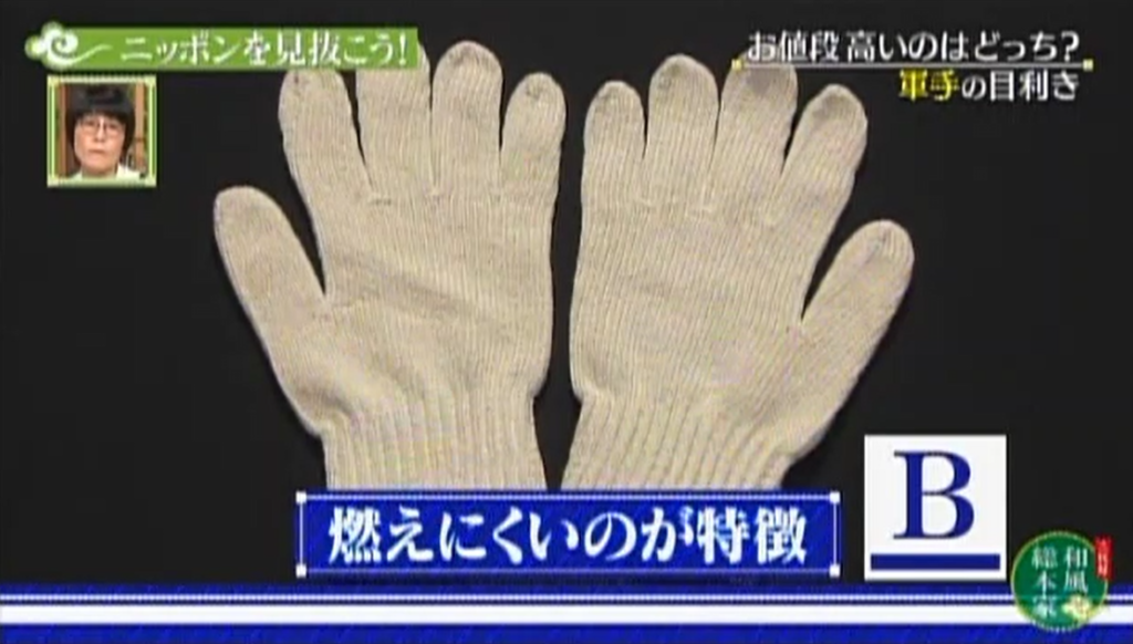 ▼正解はBでした!弊社の純綿で燃えにくい日本製軍手です!